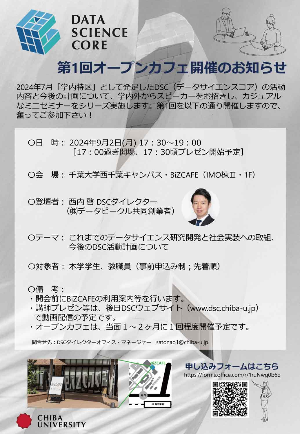 〇会 場: 西千葉キャンパス・BiZCAFE(IMO棟Ⅱ・1F)
